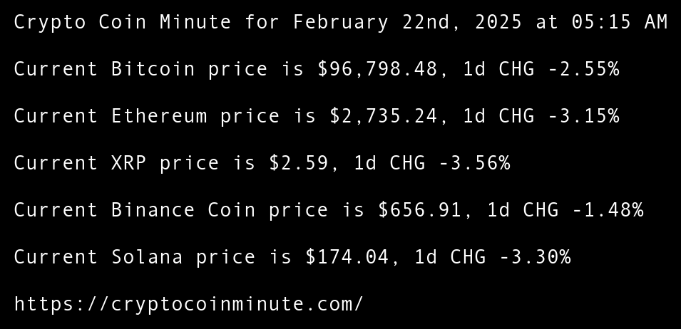 Current Bitcoin price is $96,798.48, 1d CHG -2.55%
