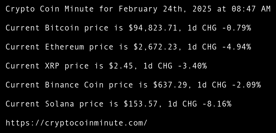 Current Bitcoin price is $94,823.71, 1d CHG -0.79%