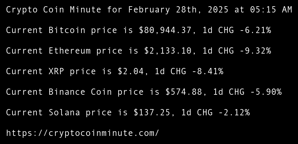 Crypto Coin Minute for February 28th, 2025 at 05:15 AM Pacific Time.