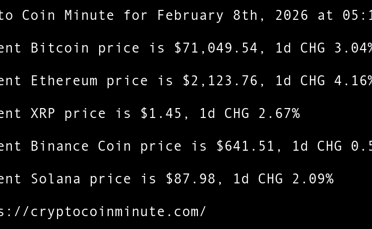 Crypto Coin Minute for February 8th, 2026 at 05:15 AM Pacific Time.