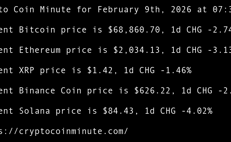 Crypto Coin Minute for February 9th, 2026 at 07:30 AM Pacific Time.
