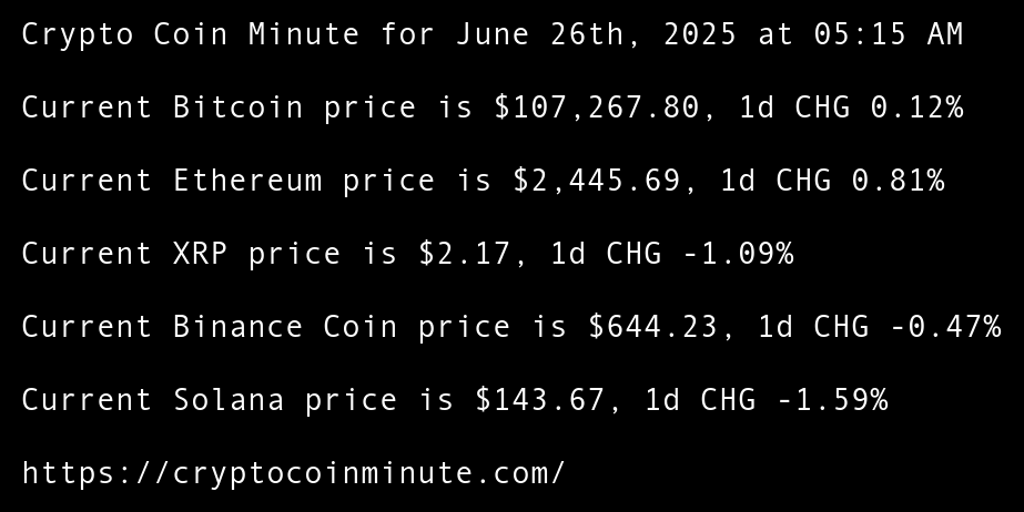 Crypto Coin Minute for June 26th, 2025 at 05:15 AM Pacific Time.