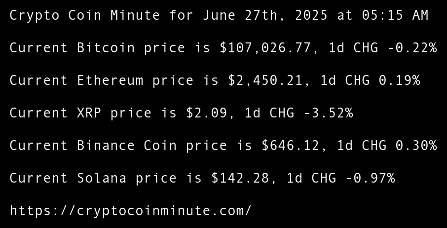 Current Bitcoin price is $107,026.77, 1d CHG -0.22%