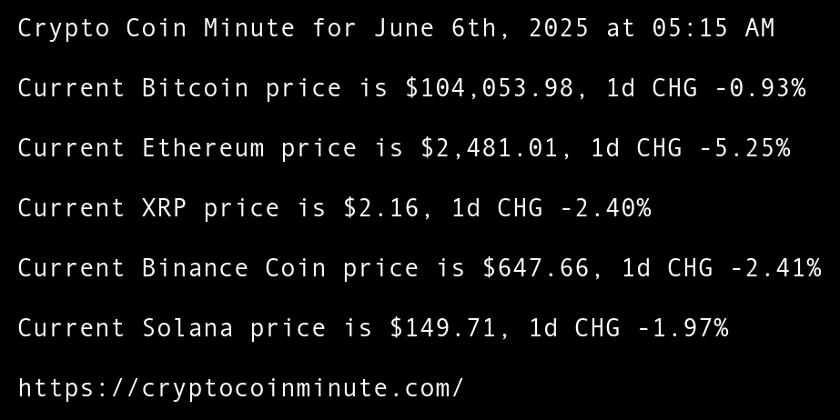 Current Bitcoin price is $104,053.98, 1d CHG -0.93%