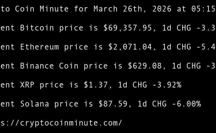 Crypto Coin Minute for March 26th, 2026 at 05:15 AM Pacific Time.