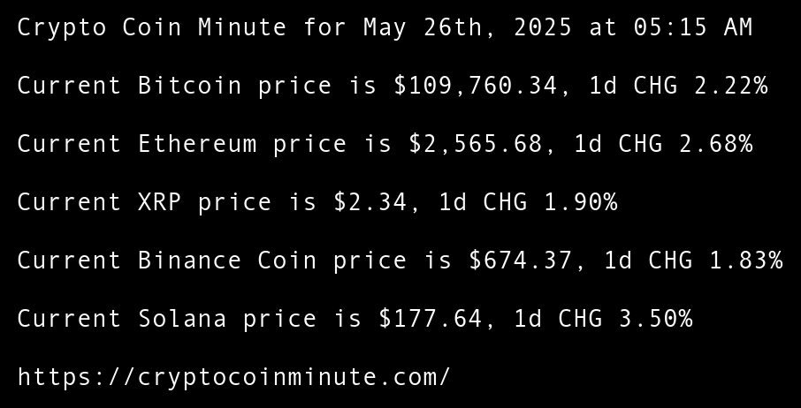 Current Bitcoin price is $109,760.34, 1d CHG 2.22%