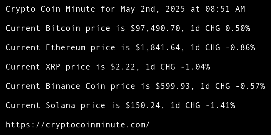 Current Bitcoin price is $97,490.70, 1d CHG 0.50%