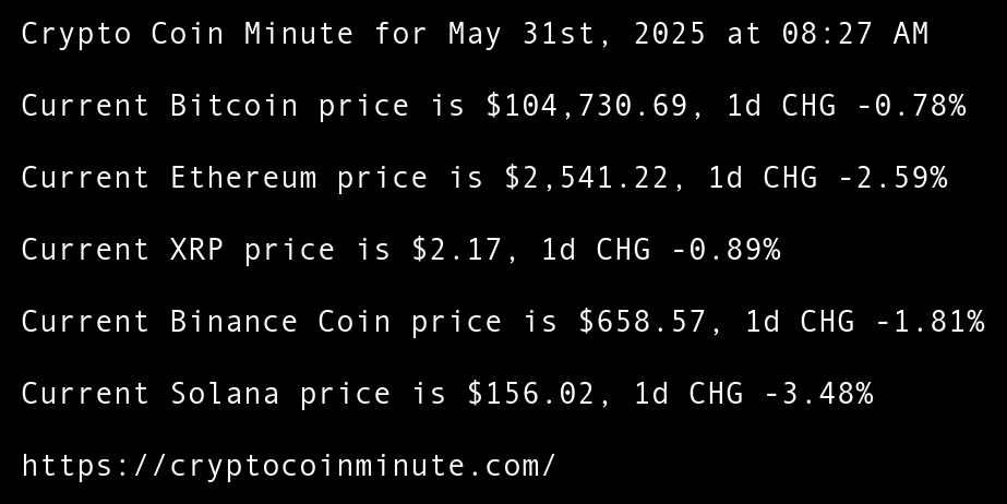 Current Bitcoin price is $104,730.69, 1d CHG -0.78%