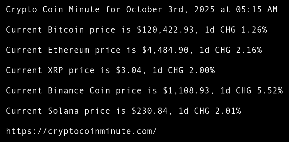 Crypto Coin Minute for October 3rd, 2025 at 05:15 AM Pacific Time.