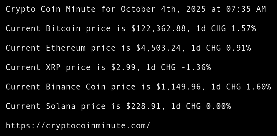 Crypto Coin Minute for October 4th, 2025 at 07:35 AM Pacific Time.