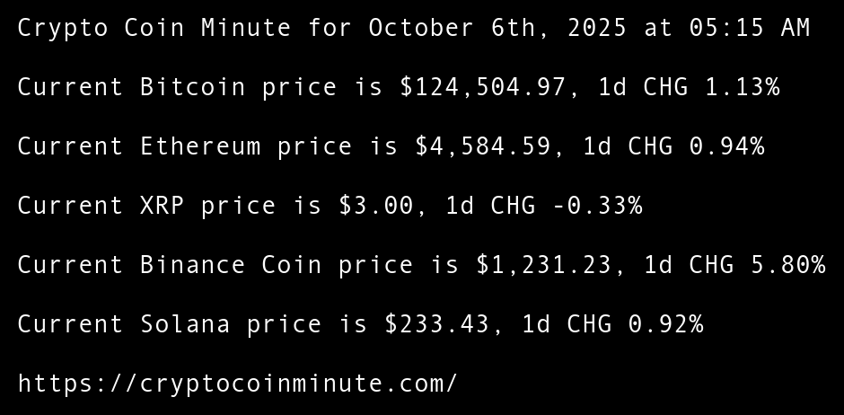 Crypto Coin Minute for October 6th, 2025 at 05:15 AM Pacific Time.