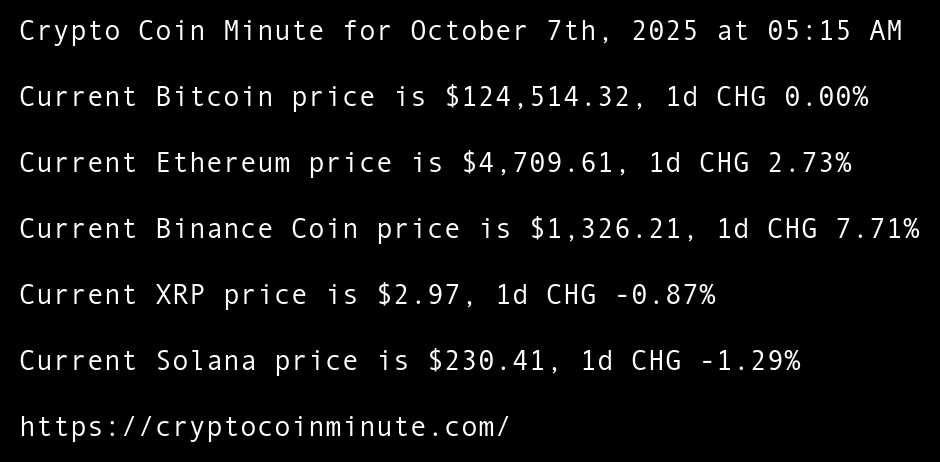 Crypto Coin Minute for October 7th, 2025 at 05:15 AM Pacific Time.