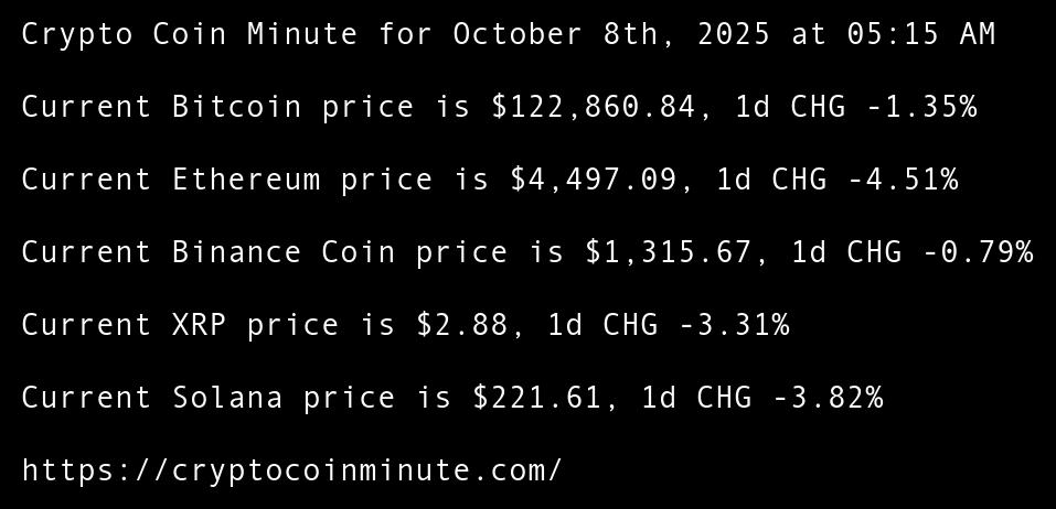 Crypto Coin Minute for October 8th, 2025 at 05:15 AM Pacific Time.