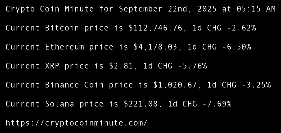 Crypto Coin Minute for September 22nd, 2025 at 05:15 AM Pacific Time.