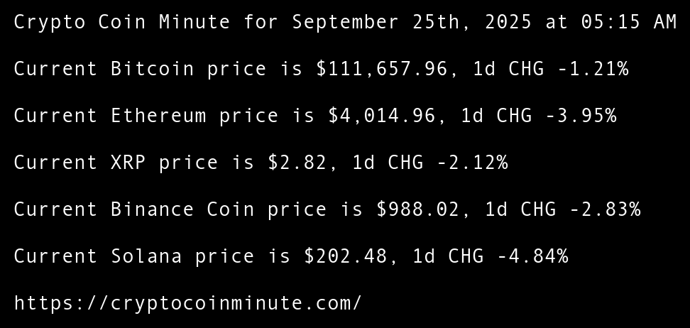 Crypto Coin Minute for September 25th, 2025 at 05:15 AM Pacific Time.