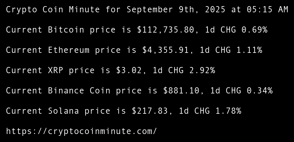 Crypto Coin Minute for September 9th, 2025 at 05:15 AM Pacific Time.