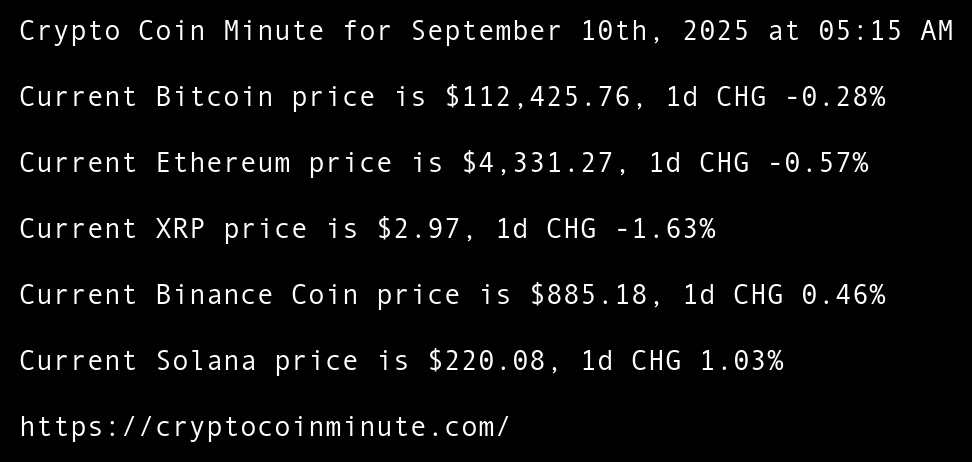 Crypto Coin Minute for September 10th, 2025 at 05:15 AM Pacific Time.