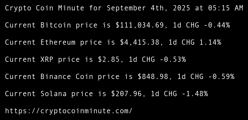 Crypto Coin Minute for September 4th, 2025 at 05:15 AM Pacific Time.