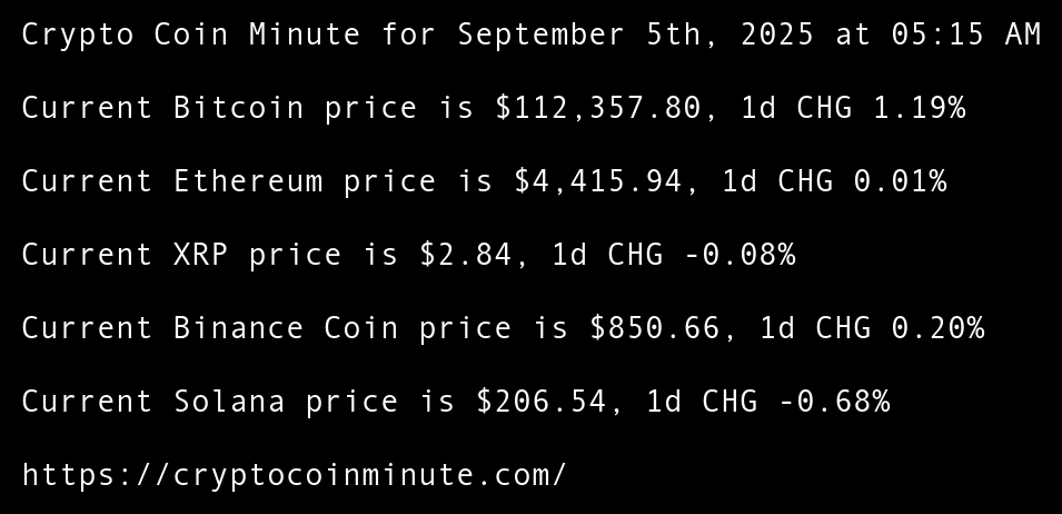 Crypto Coin Minute for September 5th, 2025 at 05:15 AM Pacific Time.