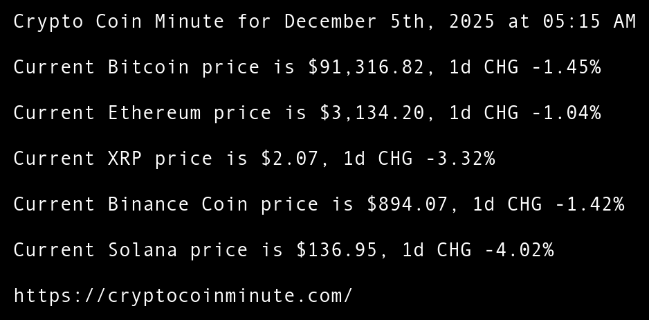 Crypto Coin Minute for December 5th, 2025 at 05:15 AM Pacific Time.
