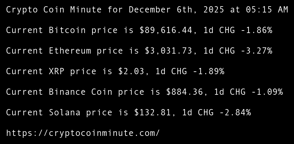 Crypto Coin Minute for December 6th, 2025 at 05:15 AM Pacific Time.