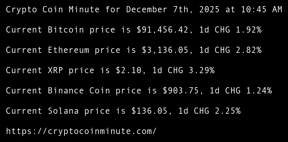 Crypto Coin Minute for December 7th, 2025 at 10:45 AM Pacific Time.