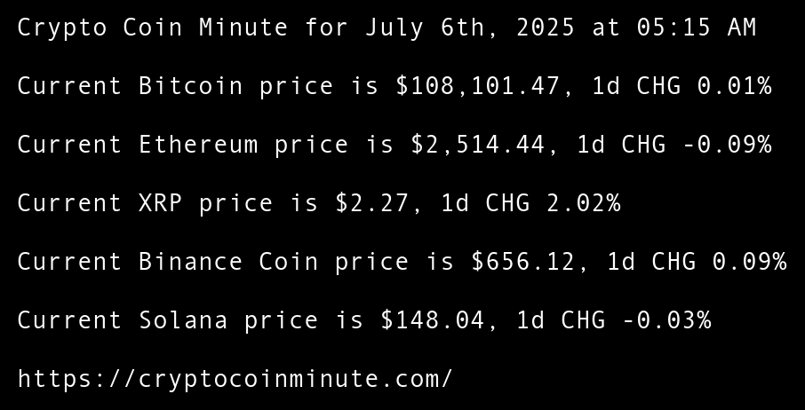 Crypto Coin Minute for December 6th, 2025 at 05:15 AM Pacific Time.