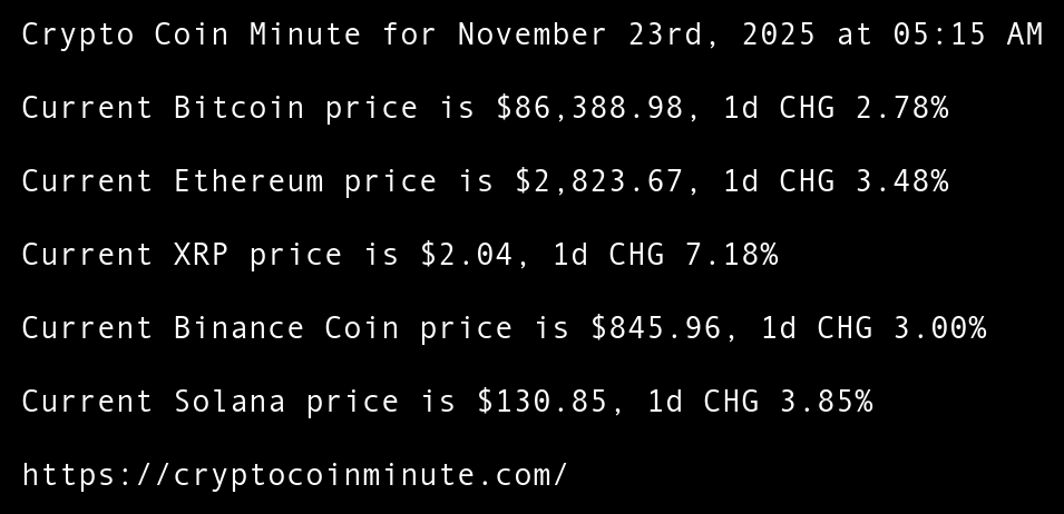 Crypto Coin Minute for November 23rd, 2025 at 05:15 AM Pacific Time.