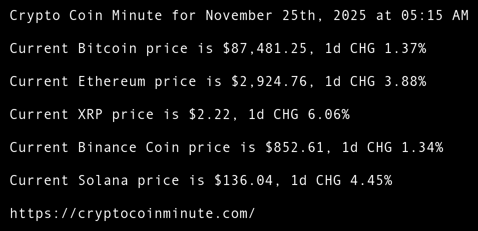 Crypto Coin Minute for November 25th, 2025 at 05:15 AM Pacific Time.