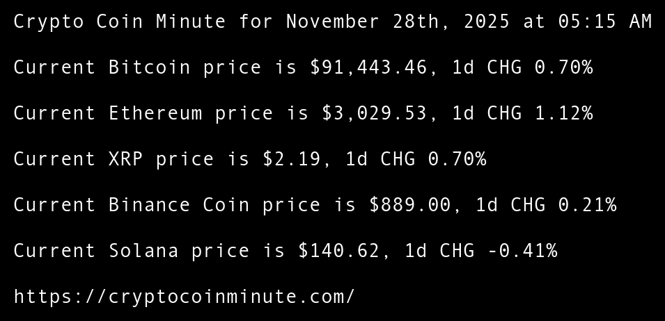 Crypto Coin Minute for November 28th, 2025 at 05:15 AM Pacific Time.