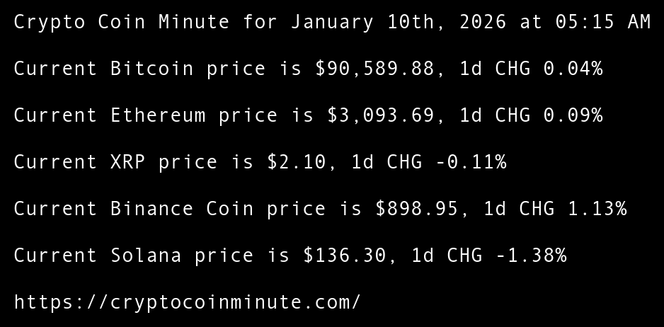 Crypto Coin Minute for January 10th, 2026 at 05:15 AM Pacific Time.