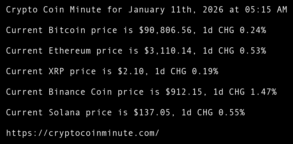 Crypto Coin Minute for January 11th, 2026 at 05:15 AM Pacific Time.