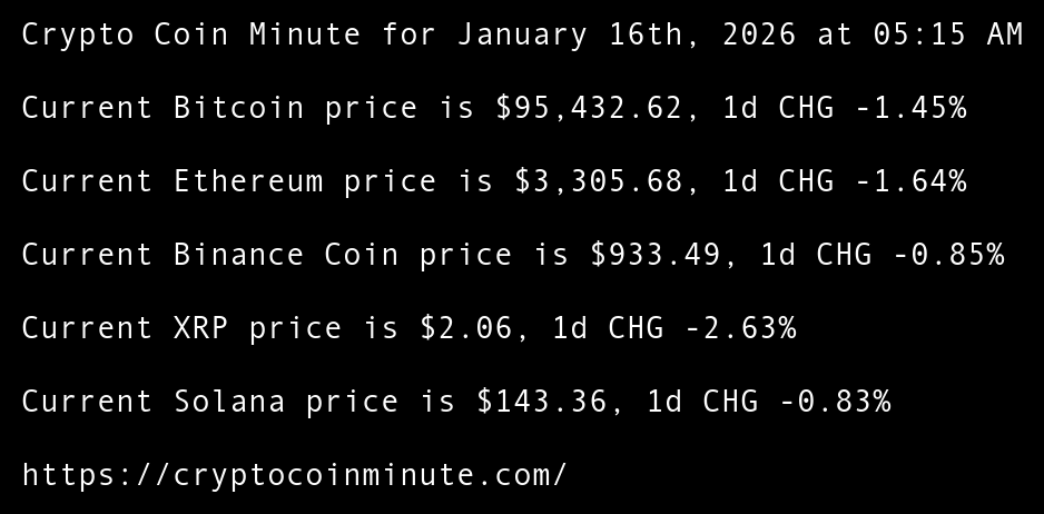 Crypto Coin Minute for January 16th, 2026 at 05:15 AM Pacific Time.