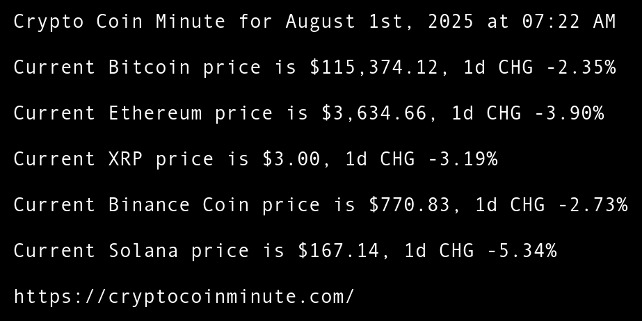 Crypto Coin Minute for August 1st, 2025 at 07:22 AM Pacific Time.