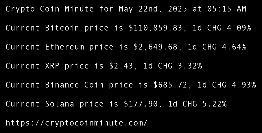 Crypto Coin Minute for May 22nd, 2025 at 05:15 AM Pacific Time.