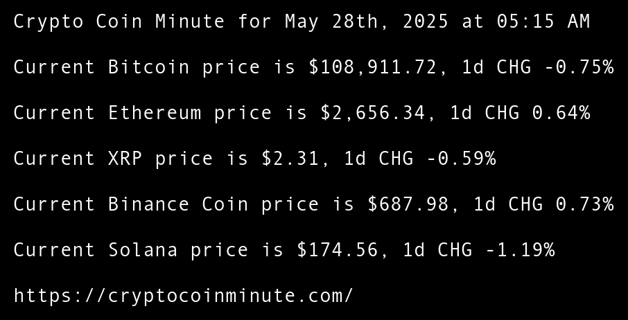 Crypto Coin Minute for May 28th, 2025 at 05:15 AM Pacific Time.