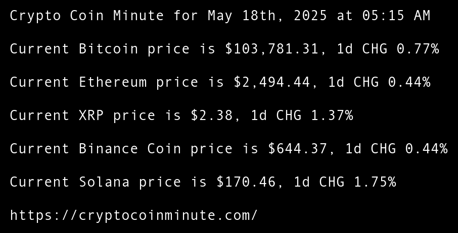 Crypto Coin Minute for May 18th, 2025 at 05:15 AM Pacific Time.