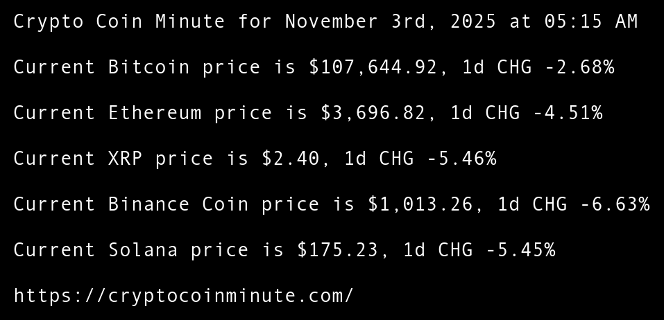 Crypto Coin Minute for November 3rd, 2025 at 05:15 AM Pacific Time.