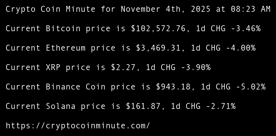 Crypto Coin Minute for November 4th, 2025 at 08:23 AM Pacific Time.