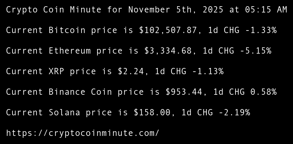 Crypto Coin Minute for November 5th, 2025 at 05:15 AM Pacific Time.